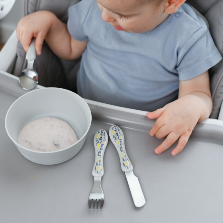 Πρακτικό, άνετο και ιδανικό για να μάθει πώς να τρώτε ανεξάρτητα. Το σχήμα προσαρμόζεται στα χεράκια.