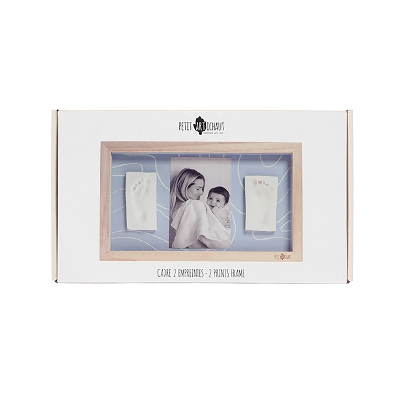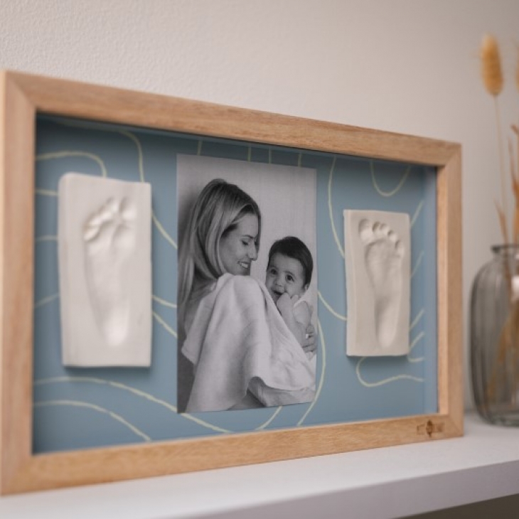 Το 2 Prints Frame – Blue Abstract έχει σχεδιαστεί για να εμφανίζει δύο αποτυπώματα μωρών και μια φωτογραφία.