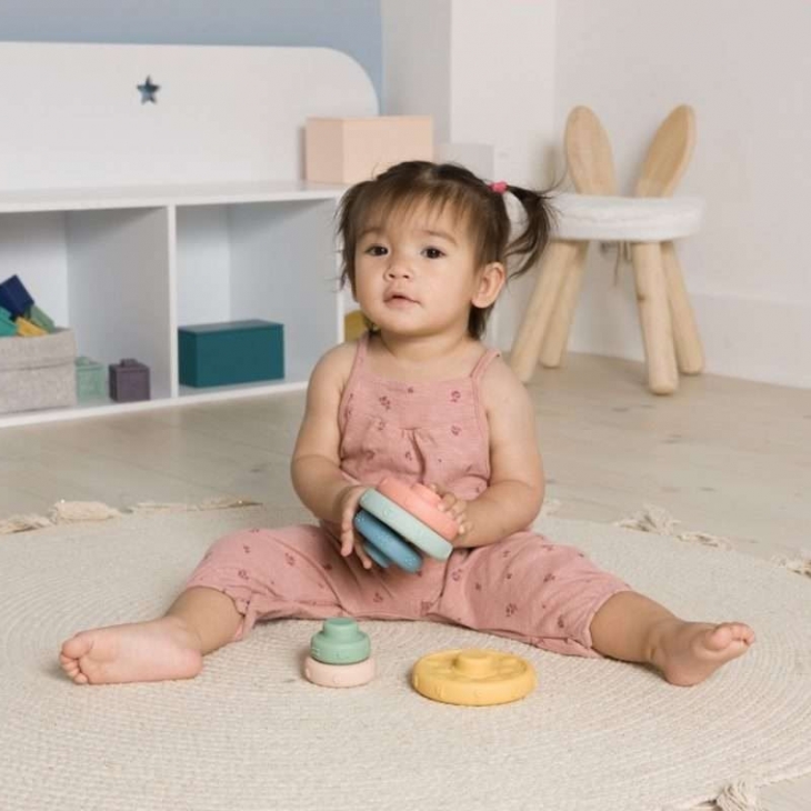 Ένα σετ που αποτελείται από 6 χρωματιστά ”δαχτυλίδια” που στοιβάζονται το ένα πάνω από το άλλο, μαθαίνοντας στο παιδί την έννοια της στοίβαξης αλλά και τα χρώματα. Έχουν και ανάγλυφα σχέδια για να βοηθήσουν το μικρό σας να αναπτύξει την αφή του.