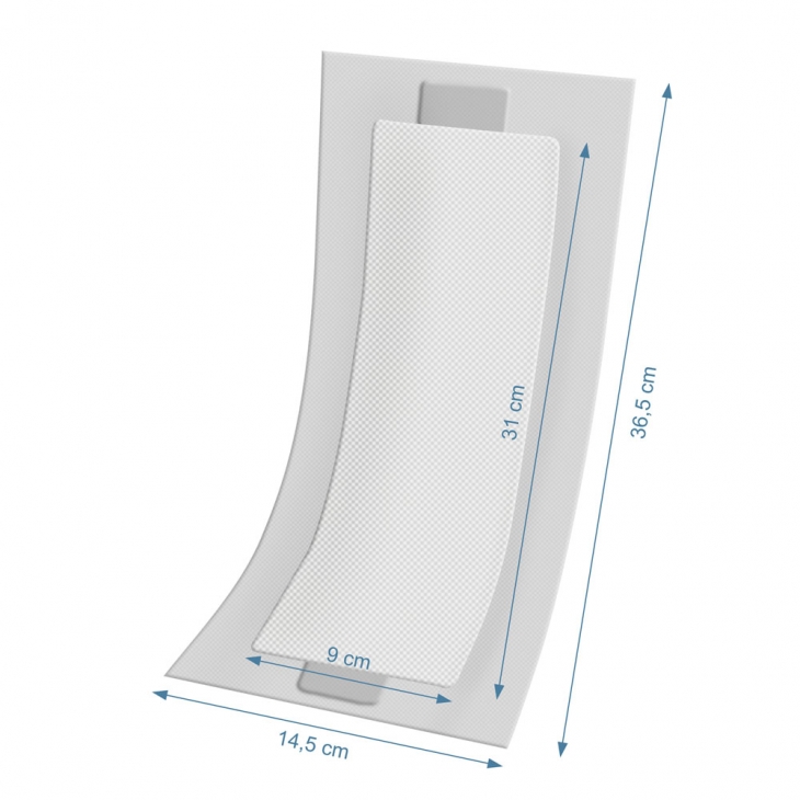 Είναι χωρίς άρωμα και το επάνω στρώμα επιτρέπει στον αέρα να κυκλοφορεί, εξασφαλίζοντας μια αίσθηση φρεσκάδας. Το υπεραπορροφητικό υλικό μέσα στη σερβιέτα δεσμεύει γρήγορα την υγρασία και εξουδετερώνει τις δυσάρεστες οσμές. Μια φαρδιά αυτοκόλλητη ταινία.