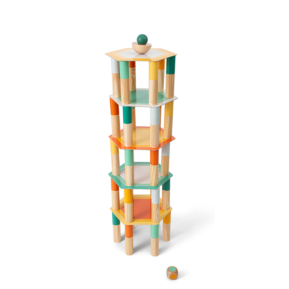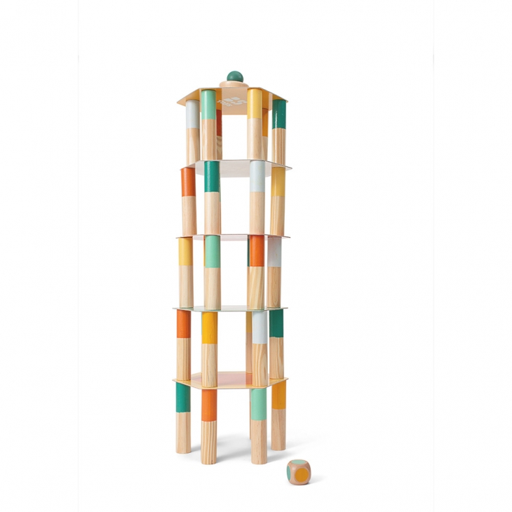 Οι παίκτες ρίχνουν εναλλάξ τα χρωματιστά ζάρια και πρέπει να αφαιρέσουν ένα ξύλινο ραβδί σε αυτό το χρώμα. Η προσεκτική επιλογή του ραβδιού είναι ζωτικής σημασίας γιατί μπορεί να είναι αυτό που προκαλεί την πτώση του πύργου…