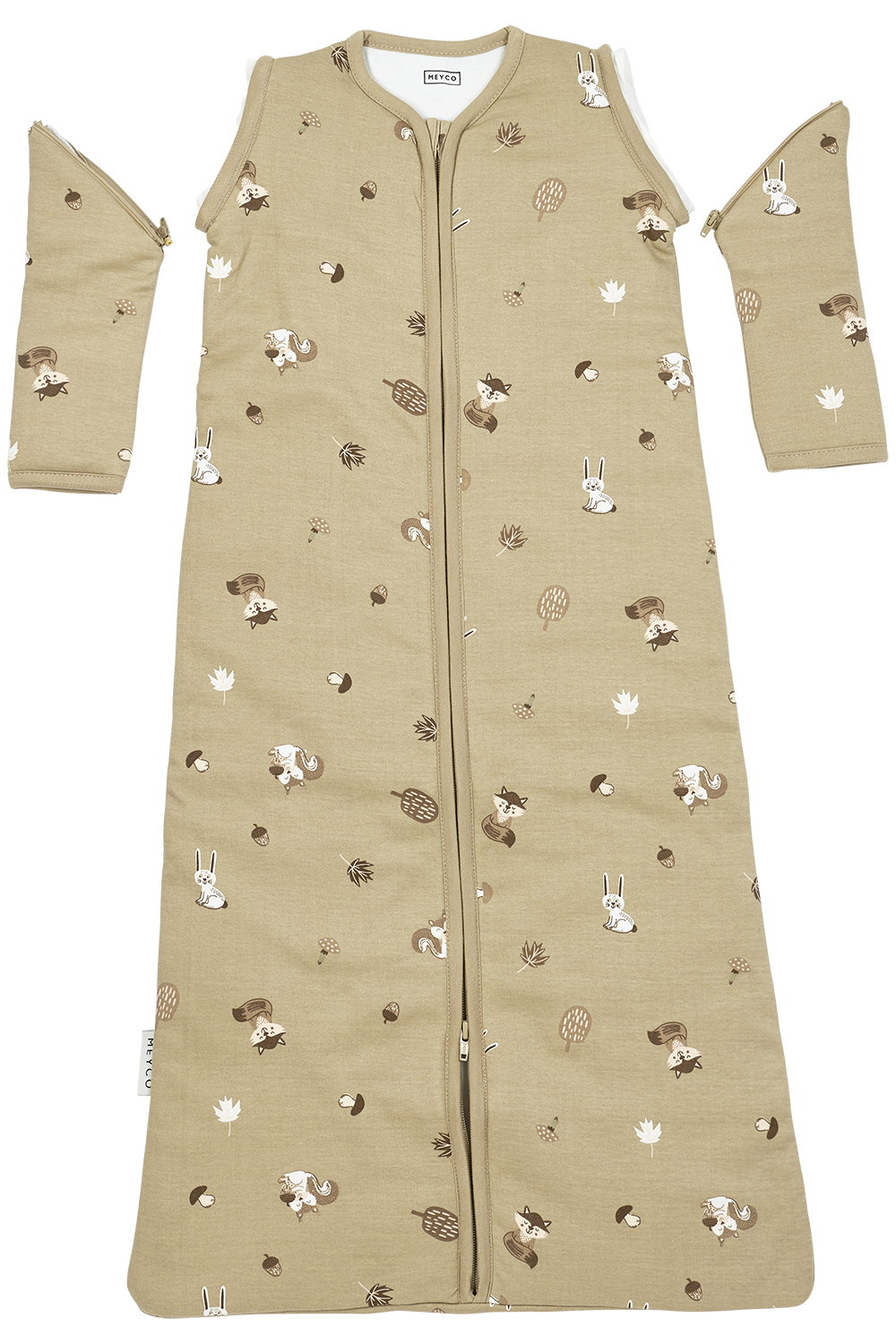 Με τον  Meyco Υπνόσακος Forest Animals με αποσπώμενα μανίκια (0-5 ετών) ,το μικρό σας μπορεί να κοιμάται άνετα και ποιοτικά όλο το χρόνο. Με ποδόσακο για έξτρα ”χουχούλιασμα” τον χειμώνα.