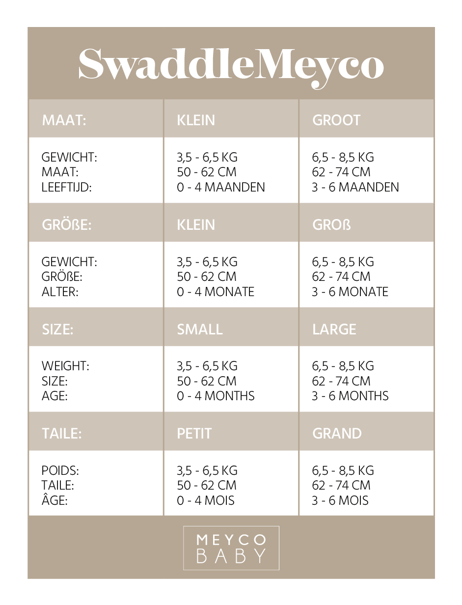 Το Swaddle της Meyco είναι κατασκευασμένο από 100% βαμβάκι, ώστε το μωρό σας να απολαμβάνει την απαλότητα και ταυτόχρονα να αερίζεται και σωστά. Επιπλέον το βαμβάκι απορροφά την υγρασία.
