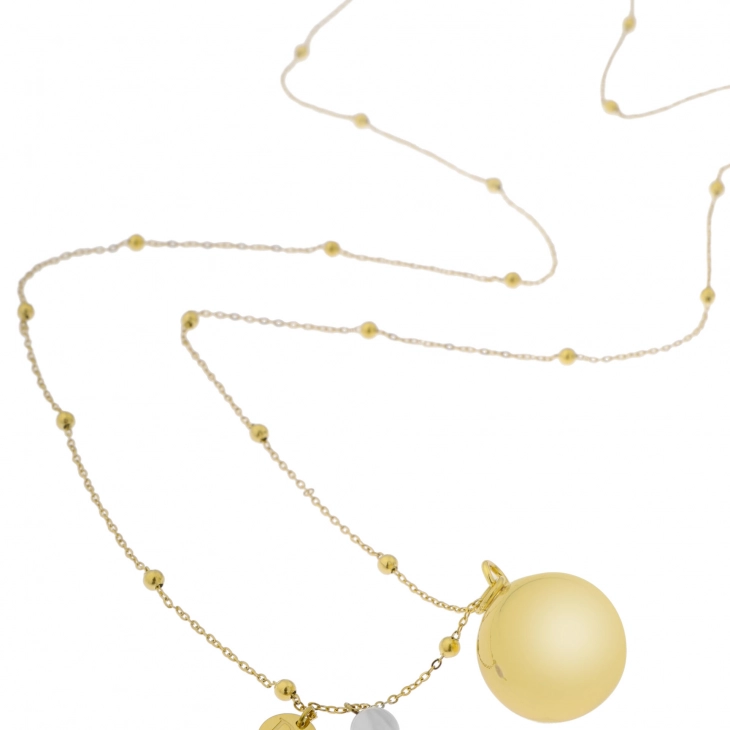 Το κολιέ babybell με ημιπολύτιμους λίθους είναι ένα όμορφο κόσμημα με ένα ιδιαίτερο μήνυμα. Σύμφωνα με μια παλιά μεξικάνικη παράδοση το μενταγιόν εγκυμοσύνης φέρνει ευτυχία, υγεία και ευημερία στη μητέρα και εδώ στο αγέννητο παιδί. Ο απαλός ήχος του κουδουνιού θα συνέβαλε επίσης σε μια χαλαρωτική εγκυμοσύνη.