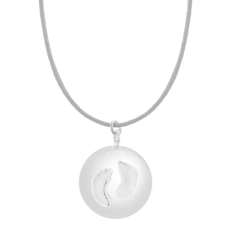 Μενταγιόν Εγκυμοσύνης Επάργυρο-Βαμβακερό Bola Sofie Silver-Grey Πατουσάκια Proud Mama PM-668