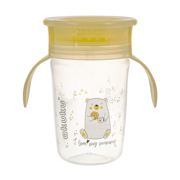 Εκπαιδευτικό Ποτηράκι 360° Με Χερούλια 240ml Yellow akuku A0670