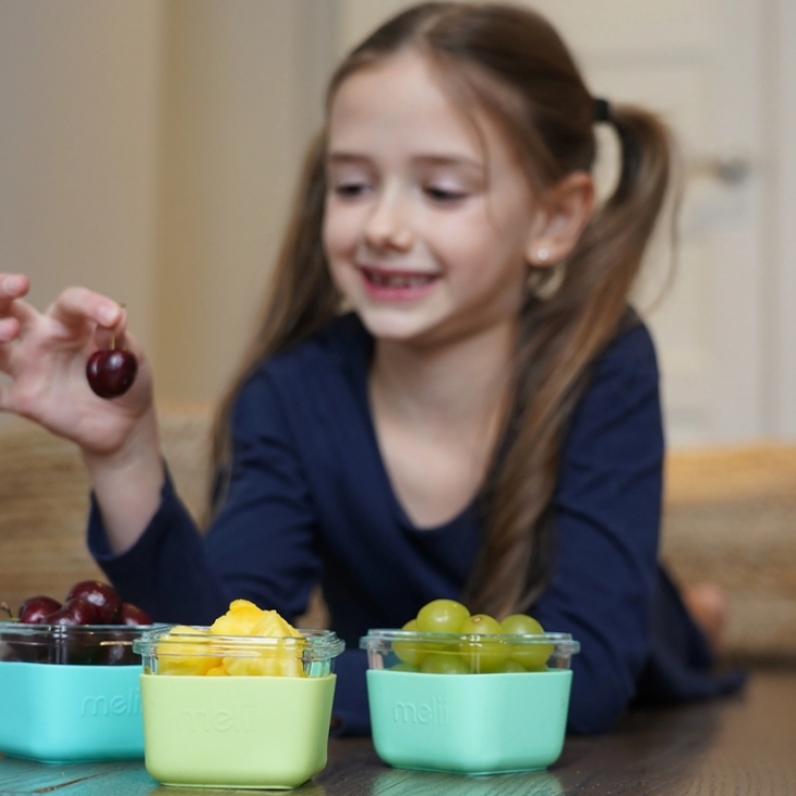 Το Melii – Glass Containers σε θήκες σιλικόνης είναι κατασκευασμένa από βοριοπυριτικό γυαλί το οποίο είναι πιο ανθεκτικό στη θερμότητα από το κοινό γυαλί ανθρακικού νατρίου.
