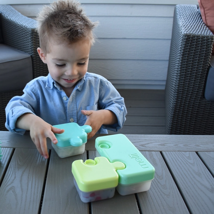 Η εμπειρία από πρώτο χέρι μας έχει διδάξει ότι χρησιμοποιώντας ελκυστικά φαγητοδοχεία, bento, κουτάλια και πηρούνια ενθαρρύνει τα παιδιά να έρθουν πιο εύκολα στο τραπέζι. Να κάτσουν περισσότερη ώρα και να έχουν μια θετική σχέση με την ώρα του φαγητού. Το φαγητοδοχείo παζλ bento της Melii εκτός από το ότι είναι πρακτικό για την μαμά είναι διασκεδαστικό για το παιδί. Τα τρία κομμάτια του παζλ είναι υπέροχα φαγητοδοχεία που δένουν μεταξύ τους, λειτουργούν και αυτόνομα και κρύβουν παιχνίδι και φαγητό!
