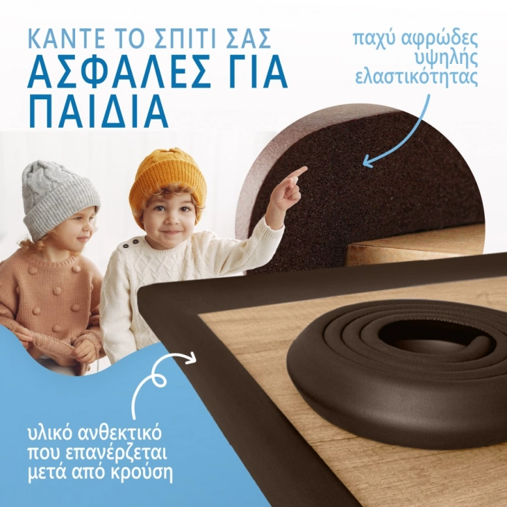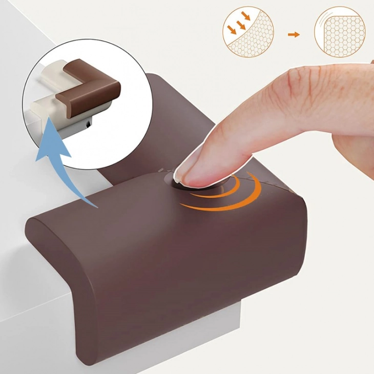 Τα προστατευτικά διαθέτουν ταινία, καθιστώντας τα εύκολο να τοποθετηθούν στις γωνίες των επίπλων όπως τραπέζια, καρέκλες, γραφεία, ντουλάπια κ.λπ.
