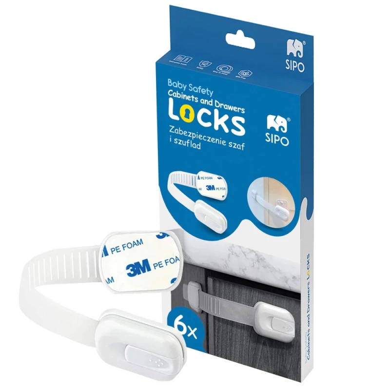 Σετ Ρυθμιζόμενες Ασφάλειες Πολλαπλών Χρήσεων 6τμχ για ντουλάπια και συρτάρια με ρυθμιζόμενο μήκος και σύστημα κλεισίματος