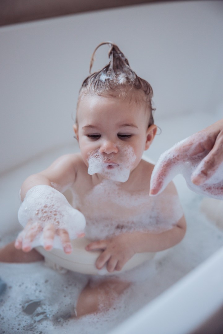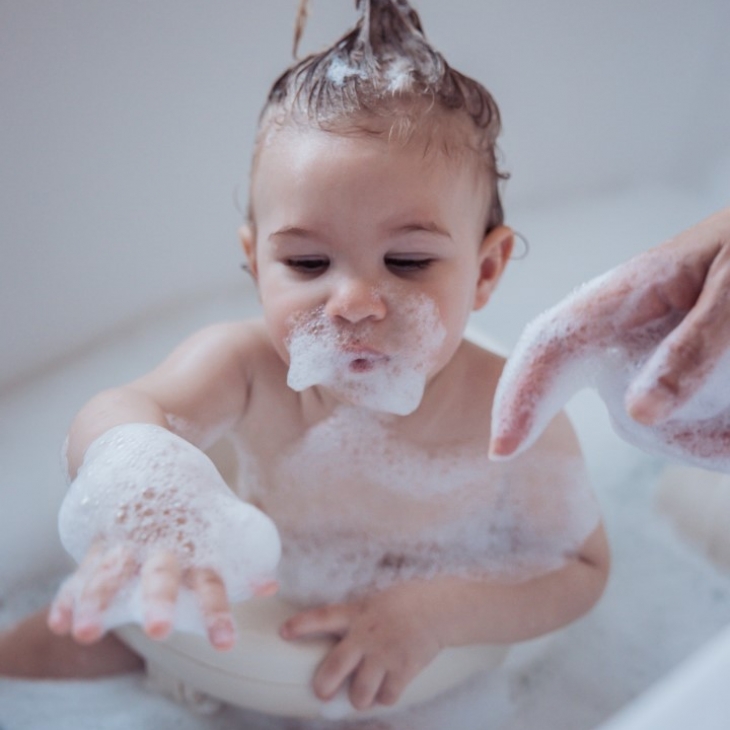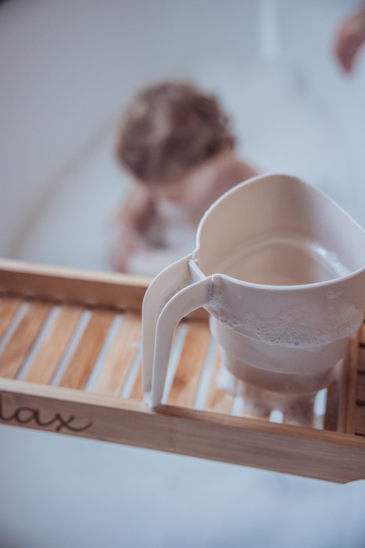Πτυσσόμενο Κύπελλο Για Μπάνιο από τη Minene που ο μοναδικός του σχεδιασμός του επιτρέπει να στερεώνεται στο κεφάλι του μωρού και εμποδίζει το νερό να πέφτει στο πρόσωπό του.