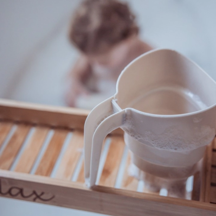 Πτυσσόμενο Κύπελλο Για Μπάνιο από τη Minene που ο μοναδικός του σχεδιασμός του επιτρέπει να στερεώνεται στο κεφάλι του μωρού και εμποδίζει το νερό να πέφτει στο πρόσωπό του.