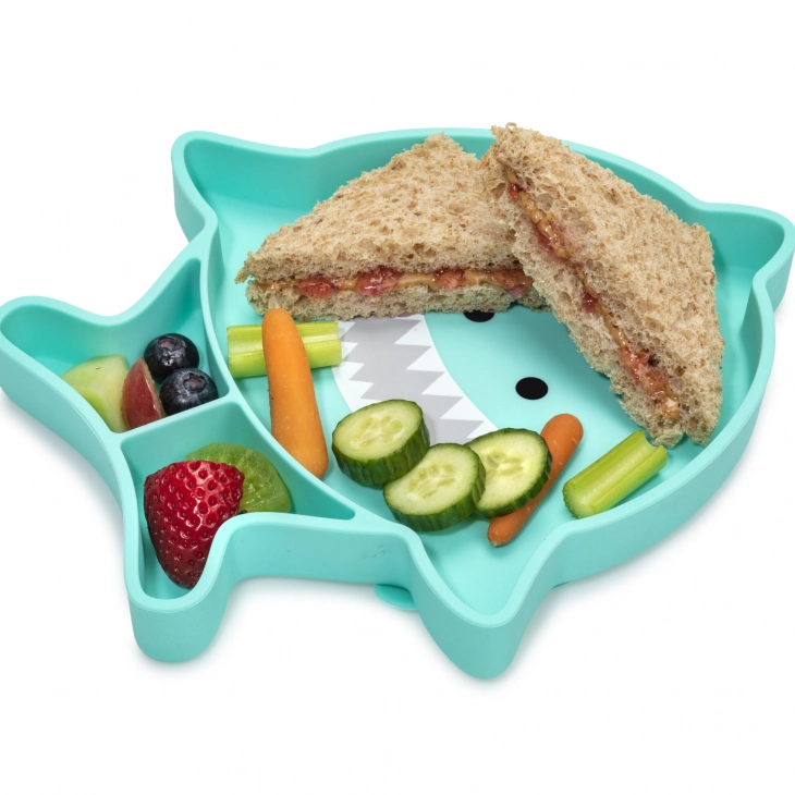 Το Πιάτο σιλικόνης με βεντούζα Shark από τη Melii θα γίνει το αγαπημένο του μωρού σας και η ώρα του φαγητού θα γίνει σούπερ διασκεδαστική! Είναι κατασκευασμένο από 100% σιλικόνη που θα βοηθήσει το μωρό στην εκμάθηση της αυτοτροφοδοσίας και στην ανάπτυξη λεπτών κινητικών δεξιοτήτων. Τα διαφορετικά πανέμορφα σχέδια ζώων βοηθούν το μωρό να συνδέσει την ώρα του φαγητού με μία θετική σκέψη κι έτσι όλα γίνονται πιο εύκολα. Λόγω της βεντούζας στο κάτω μέρος το πιατάκι παραμένει στη θέση του, όσο κι αν προσπαθεί ο μικρός μας φίλος να το πετάξει κάτω.