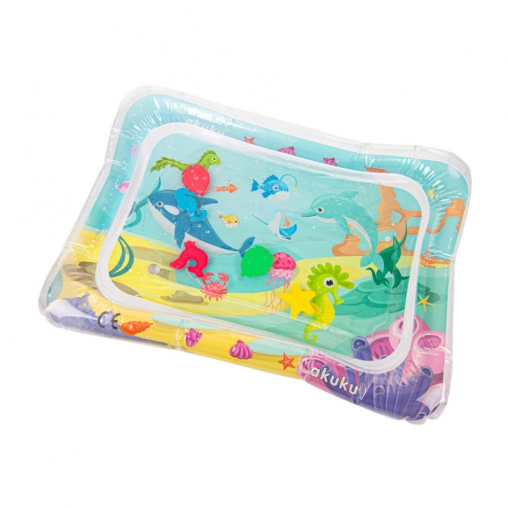 Το Βρεφικό Στρωματάκι Νερού για Παιχνίδι από την akuku τώρα σε νέα έκδοση! Ανταποκρίνεται στην πίεση των χεριών και των ποδιών του παιδιού σας προκαλώντας τη μετακίνηση του νερού και των υδρόβιων ζώων που βρίσκονται κάτω από την επένδυση.