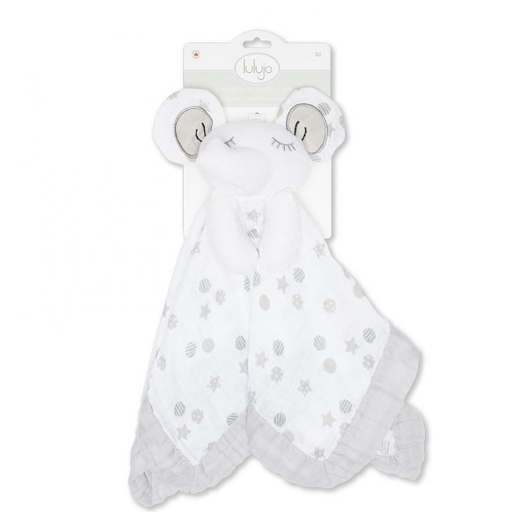 Η σειρά Lovies της Lulujo έχει και ένα υπέροχο νάνι ελεφαντάκι για την συντροφιά, παρηγοριά του μωρού στη συλλογή της.