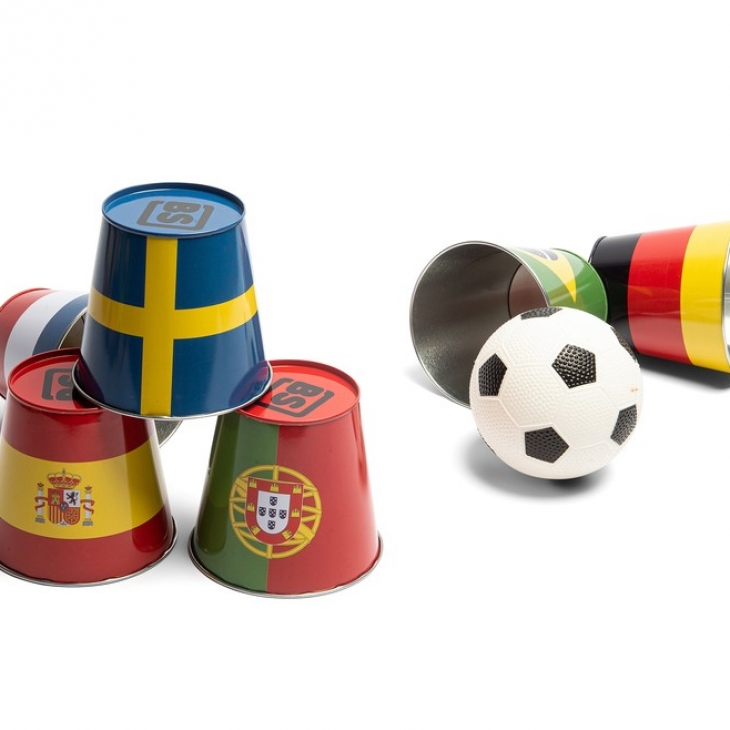 Το σετ περιλαμβάνει 6 τενεκεδάκια 11x11x10εκ., μπάλα ποδοσφαίρου για τις ρίψεις 10εκ.
