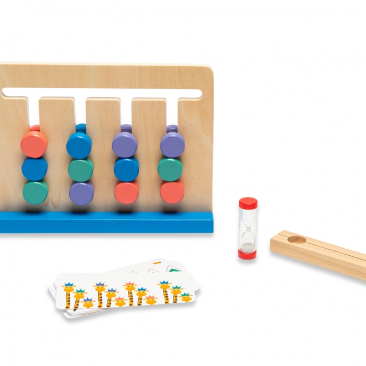 Giraffe Challenge – FSC 100% από τη Bs Toys. Προσπάθησε να παρατηρήσεις τις καμηλοπαρδάλεις και το χρωματικό μοτίβο που σου υποδεικνύει η κάρτα σου και κούνα τα στρογγυλά κομμάτια ,βάζοντάς τα στη σωστή σειρά.