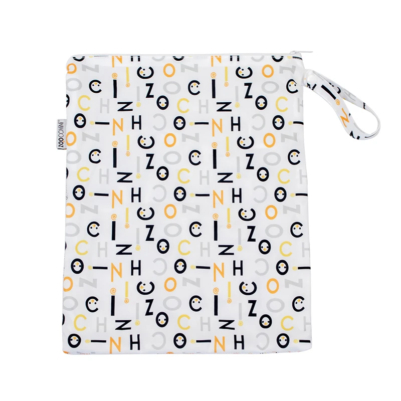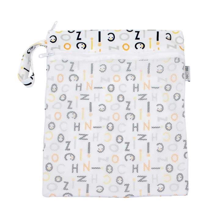 Ένα Αδιάβροχο τσαντάκι – Zoo Letters με αποκλειστική στάμπα ZOOCCHINI στην οποία μπορείτε να βάλετε χρησιμοποιημένες πάνες του μωρού σας, είδη περιποίησης ή ακόμη και είδη κολύμβησης. Αυτή η αδιάβροχη θήκη χωράει έως και τέσσερις λερωμένες υφασμάτινες πάνες και περιλαμβάνει διχτυωτή τσέπη με φερμουάρ για μικρά απαραίτητα, όπως μαντηλάκια ταξιδιού και μερικά στεγνά ένθετα.