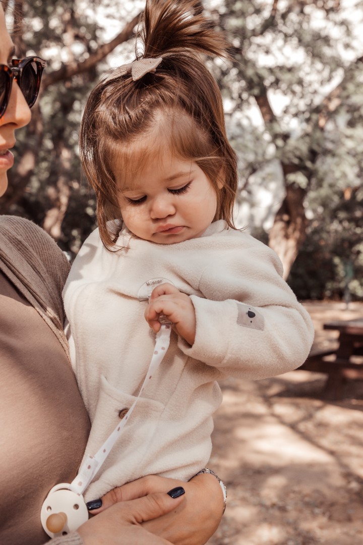 Στερεώνεται σταθερά στα ρούχα του μωρού σας και το μέρος που κρατάει την πιπίλα είναι με ασφαλές σταθερό βέλκρο!