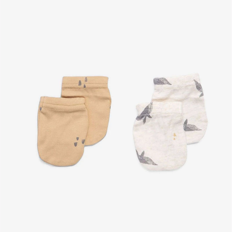 Σετ 2 Ζεύγη Γαντάκια Βαμβακερά Νεογέννητου Whale/Ocher Minene 22130005550OS