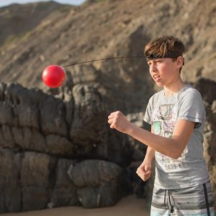 Φόρεσέ του γύρω από το κεφάλι. Προσπάθησε να χτυπήσεις την μπάλα όσες περισσότερες φορές μπορείς στην σειρά. Η μπάλα θα επιστρέψει πίσω σε σένα λόγω της ελαστικότητας. Όσο πιο δυνατά χτυπήσεις τόσο πιο δυνατά θα σου γυρίσει.