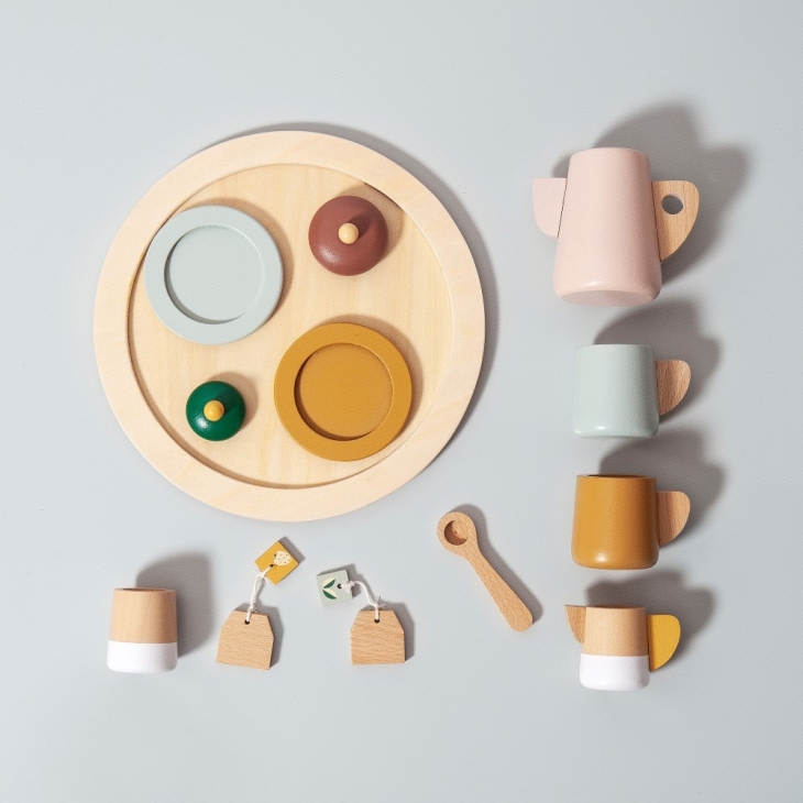 To Ξύλινο Σετ Τσαγιού αποτελείται από 1 δίσκο, 1 τσαγιέρα, 1 βαζάκι ζάχαρης, 1 βαζάκι για γάλα, 2 φλιτζάνια, 2 φακελάκια τσαγιού και 1 κουταλάκι.