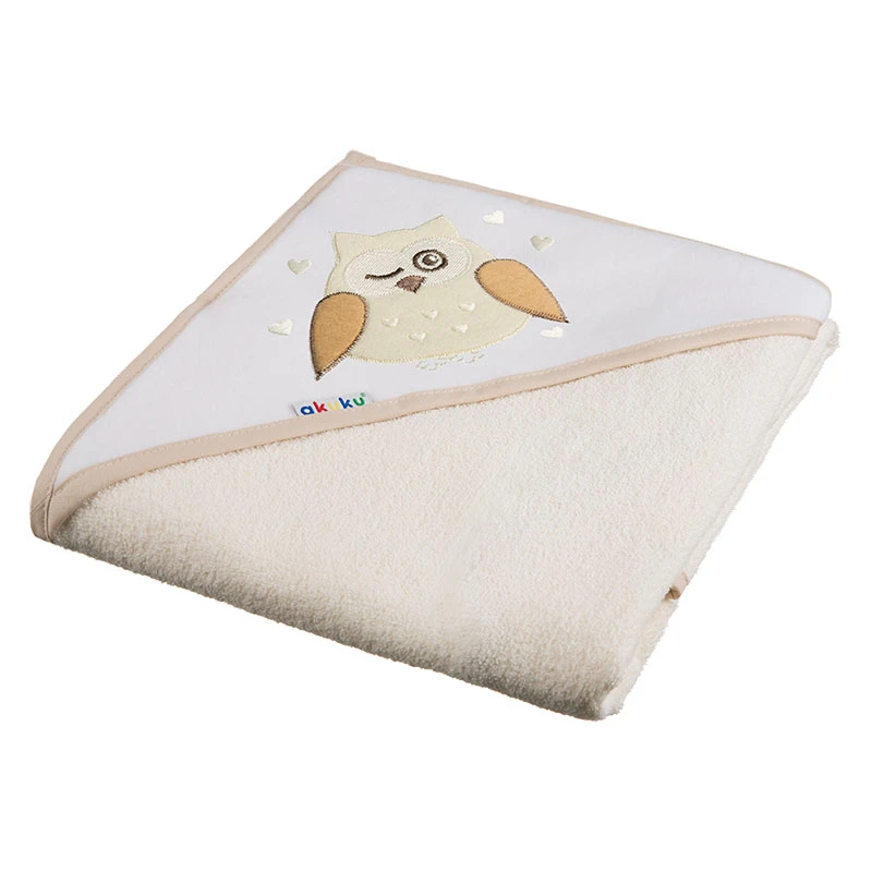 Κάπα Βαμβακερή-Terry 100x100εκ. Κουκουβάγια Κρεμ akuku A1241