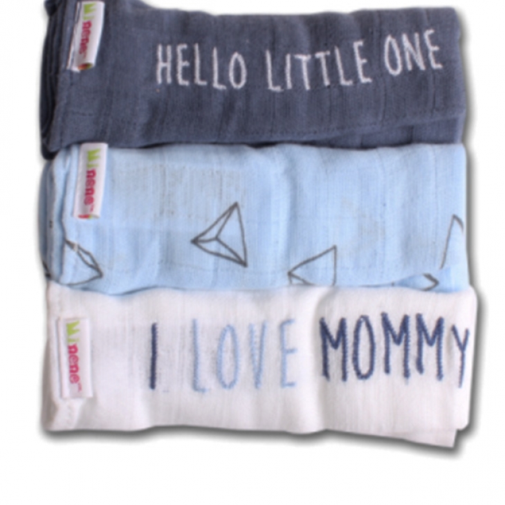 Από τη Minene Σετ από 3 βαμβακερές μουσελίνες που σας έρχονται μέσα σε όμορφη συσκευασία από οργάντζα! (I love mommy)