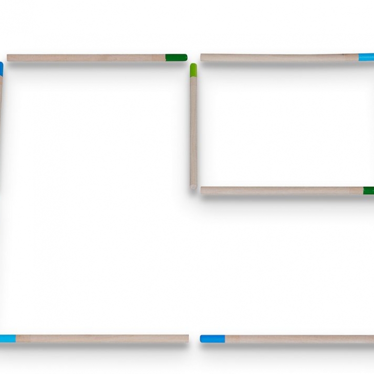 24 μεγάλα ξυλάκια με χρωματιστή άκρη και 30 κάρτες με την λύση στο πίσω μέρος.