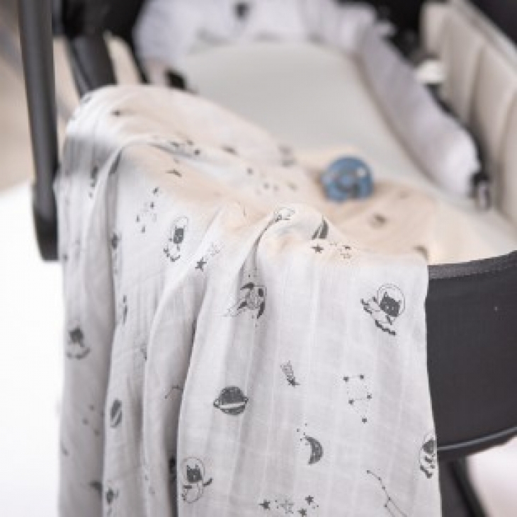 Μεγάλη μουσελίνα σε πολύ όμορφα χρώματα και σχέδια με αστερισμούς . Πολύ μαλακή και απαλή για το ευαίσθητο δερματάκι του μωρού.
