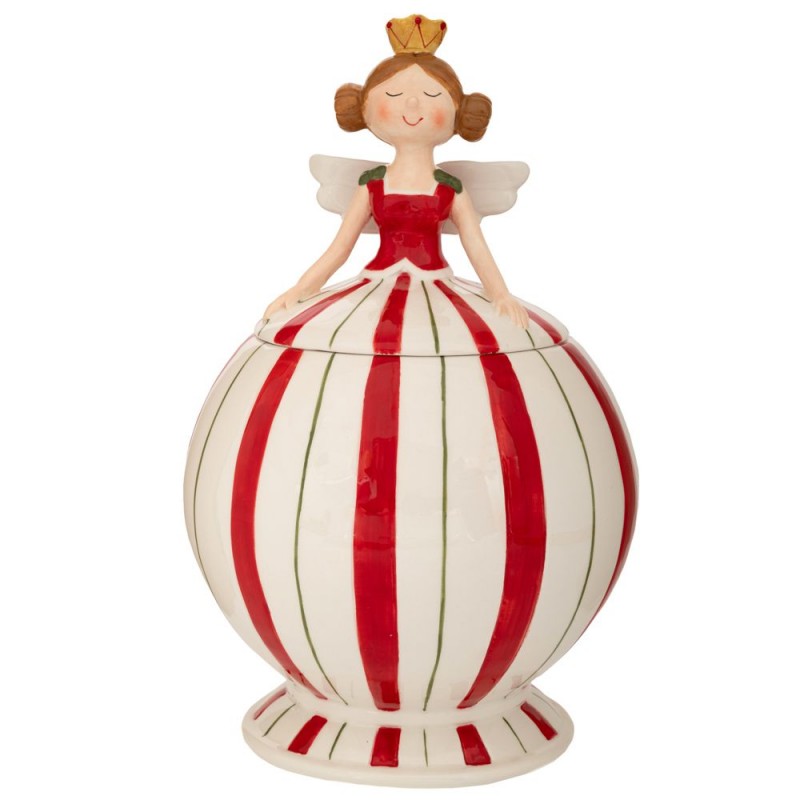 Χριστουγεννιάτικη μπισκοτιέρα κεραμική σε σχήμα νεράιδας σε λευκό χρώμα με κόκκινες ρίγες από την iliadis - Διαστάσεις: 17x17x27εκ.