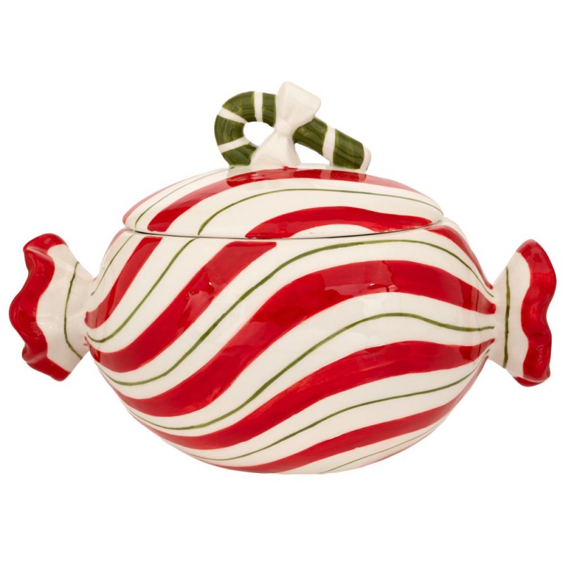 Χριστουγεννιάτικη μπισκοτιέρα κεραμική σε σχήμα καραμέλας σε λευκό χρώμα με κόκκινες ρίγες από την iliadis - Διαστάσεις: 21,5x13x15εκ.