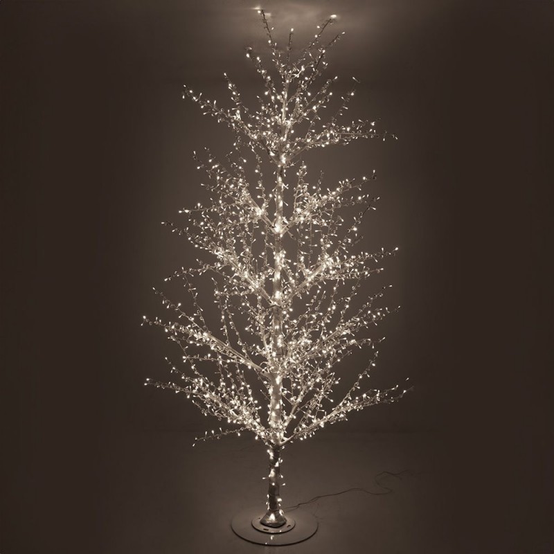 Δένδρο λευκό 280εκ. με κρυσταλλάκια και 1536 led λαμπάκια λευκού θερμού φωτισμού σε λευκή μεταλλική βάση. Λειτουργεί με ρεύμα.