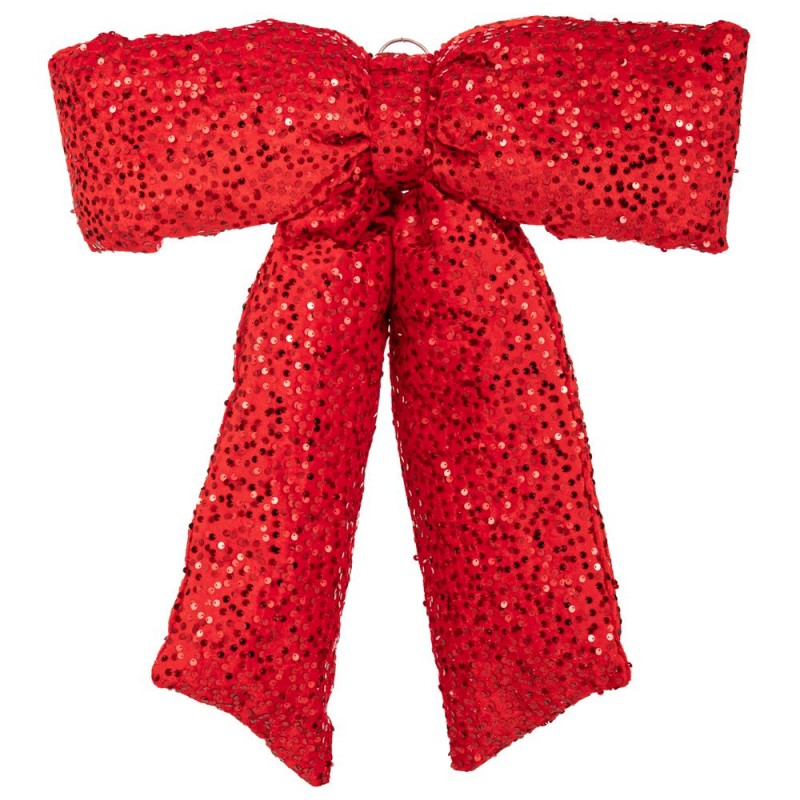 Χριστουγεννιάτικος διακοσμητικός φιόγκος κρεμαστός, με πούλιες σε κόκκινο χρώμα από την iliadis - Διαστάσεις: 50x60εκ.