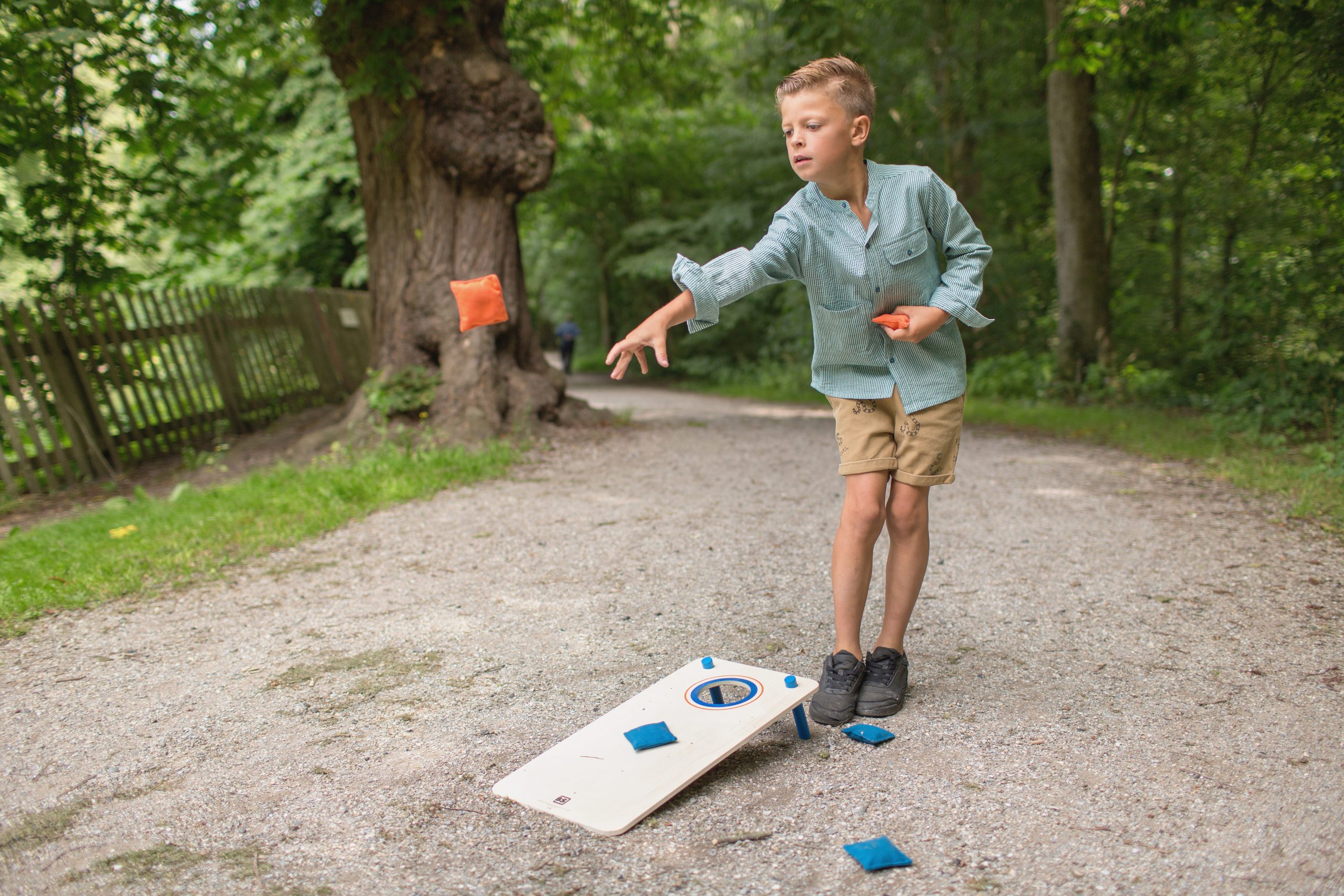 Το Παιχνίδι με στόχους 2 ομάδων είναι από τα πιο διασκεδαστικά παιχνίδια για τους μικρούς μας φίλους και μπορούν να παίξουν survivor με όλη την παρέα! Τοποθετήστε τις σανίδες τη μία απέναντι από την άλλη. Φτιάξτε τις ομάδες και ξεκινήστε να ρίχνετε εναλλάξ. Βαθμολογήστε με 1 βαθμό τα σακιά που ρίχνετε πάνω στον πίνακα και με 3 βαθμούς τα σακιά που μπαίνουν μέσα στο στόχο.