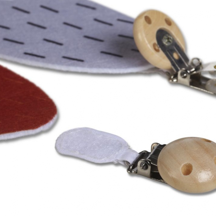 Η χρήση απλή, πιάνουν το κλιπ πάνω στο ρούχο και κολλούν τις ουρές με velcro (σκρατς ελληνιστί) πάνω στο κλιπ. Ξεκολλάει εύκολα και με ασφάλεια χωρίς να τραβήξει το παιδί ή το ρούχο του.