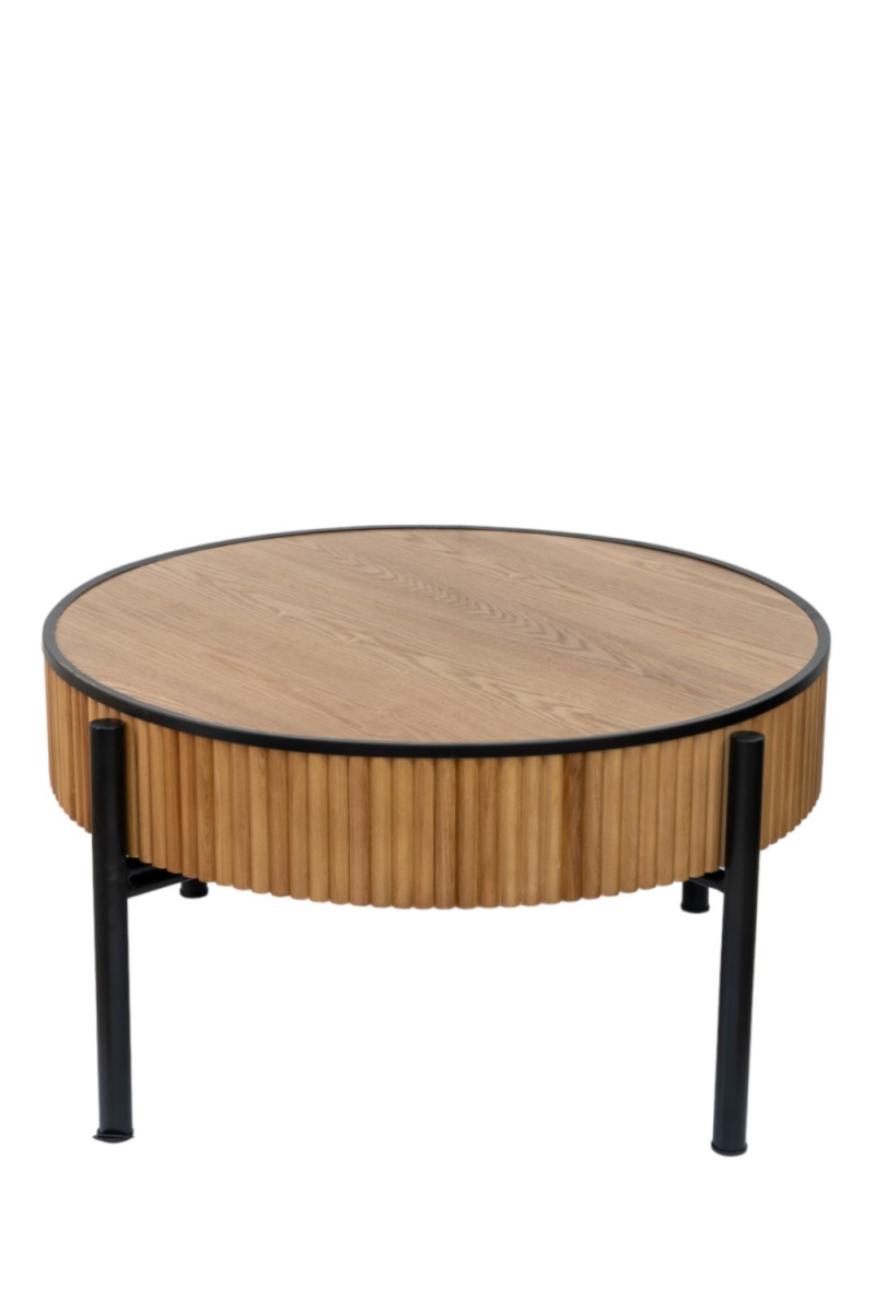 Τραπεζάκι στρογγυλό ξύλινο σε καφέ χρώμα με μαύρα μεταλλικά πόδια από την Zen Collection - Διαστάσεις: 80x44εκ.