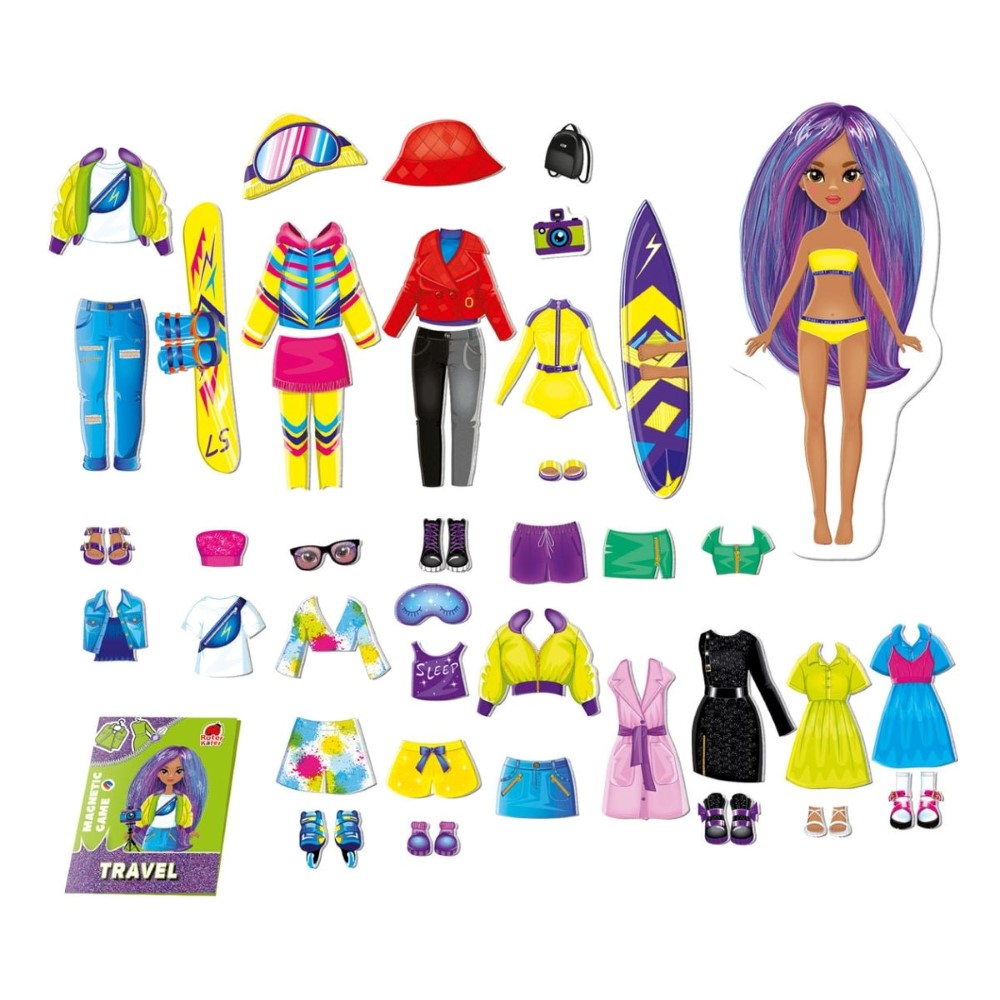Βοηθήστε την να δημιουργήσει ενδιαφέροντα και μοδάτα looks, χρησιμοποιώντας μαγνητικά ρούχα. Επιλέξτε ανάμεσα σε διαφορετικά ρούχα και αξεσουάρ, είτε για καθημερινές περιπέτειες είτε για ειδικές αποδράσεις. Αφήστε τη φαντασία σας ελεύθερη και φτιάξτε τα δικά σας μοναδικά στυλ, αλλάζοντας τις μαγνήτες και τα κομμάτια όποτε θέλετε.