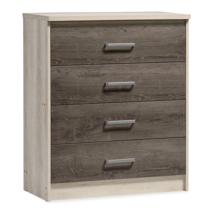 - Φέρει τέσσερα μεγάλα συρόμενα συρτάρια σε σκούρη απόχρωση. Υψος συρταριού εξωτ: 20εκ -εσωτ 15εκ