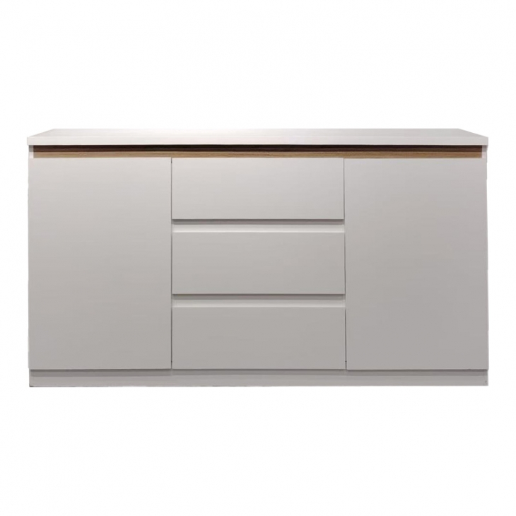 Ανανεώστε την αισθητική του χώρου σας με τον κομψό και λειτουργικό μπουφέ Chiemo. Αυτό το έπιπλο αποθήκευσης συνδυάζει τον σύγχρονο μινιμαλισμό με την πρακτικότητα, προσφέροντας άφθονο χώρο για την οργάνωση των αντικειμένων σας. Διαθέτει δύο ευρύχωρα ντουλάπια με εσωτερικά ράφια και τρία άνετα συρτάρια, παρέχοντας ευελιξία για την αποθήκευση σερβίτσιων, λευκών ειδών ή άλλων προσωπικών αντικειμένων.