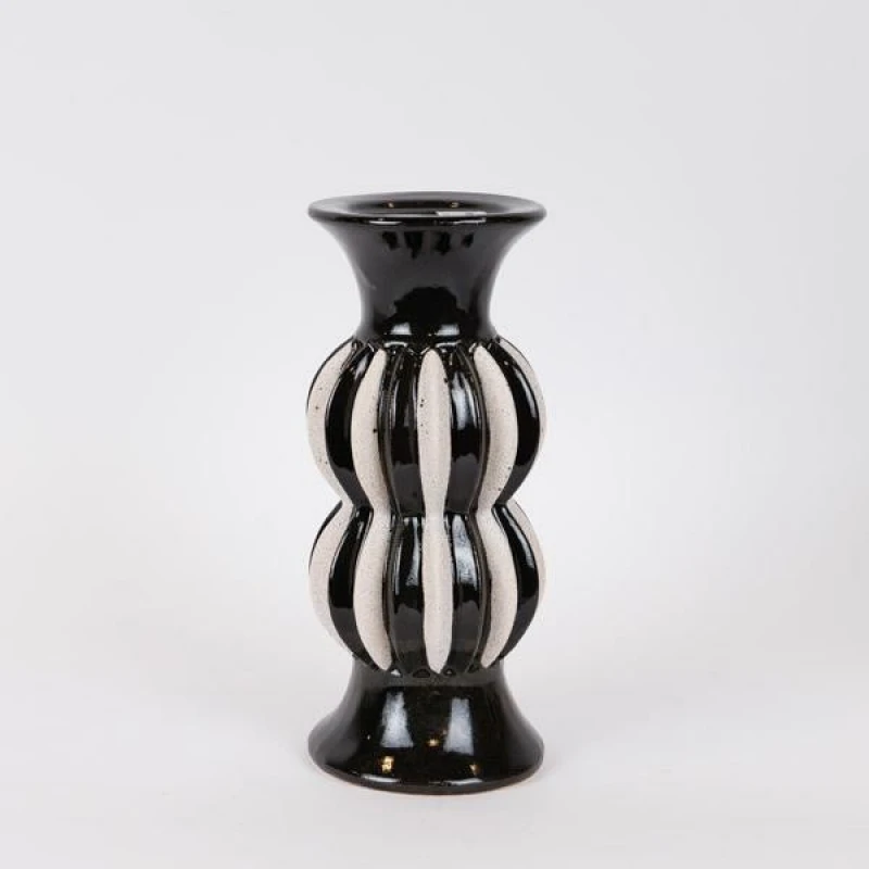Κηροπήγιο κεραμικό σε μαύρο - λευκό χρώμα από την ESTHETI - Διαστάσεις: 11,8x28εκ.