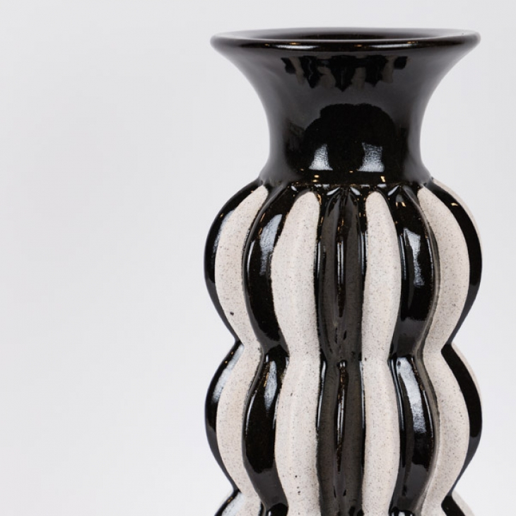 Κηροπήγιο κεραμικό σε μαύρο - λευκό χρώμα από την ESTHETI - Διαστάσεις: 13x39,5εκ.