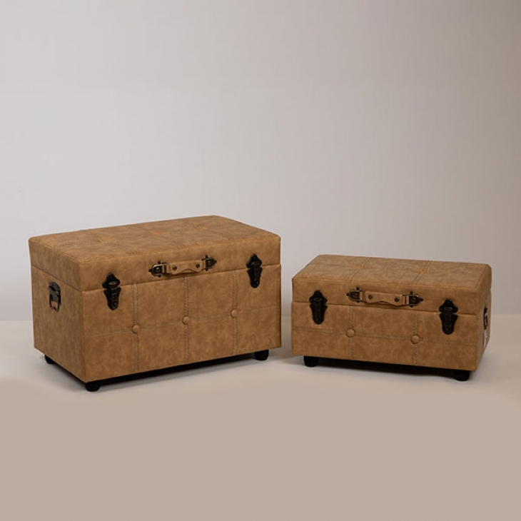 Σετ 2τμχ μπαούλα ξύλινα - pu σε μπεζ χρώμα με μεταλλικές μαύρες λεπτομέρειες από την ESTHETI - Διαστάσεις: 61x37x37εκ.-51x30x26εκ.