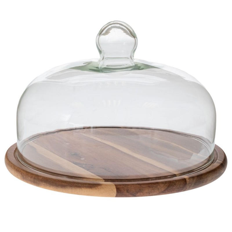 Δίσκος σερβιρίσματος ξύλινος σε φυσικό χρώμα με γυάλινο, διάφανο καπάκι από την iliadis - Διαστάσεις: 29x21εκ.