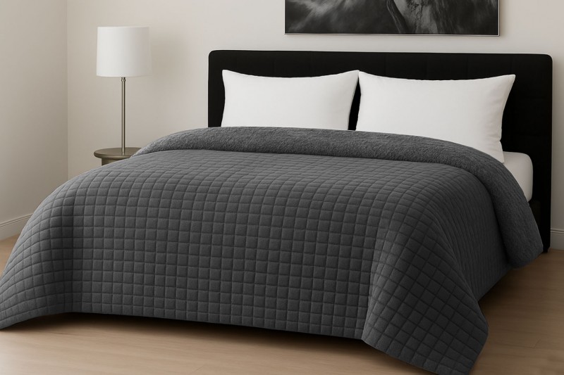 Κουβερτοπάπλωμα flannel comfort 2 όψεων με γέμιση 100% πολυεστερική βατά 250gr με σχέδιο τετραγωνάκι σε σκούρο γκρι χρώμα, 700gsm από την Le Blanc - Διαστάσεις: 200x240εκ.