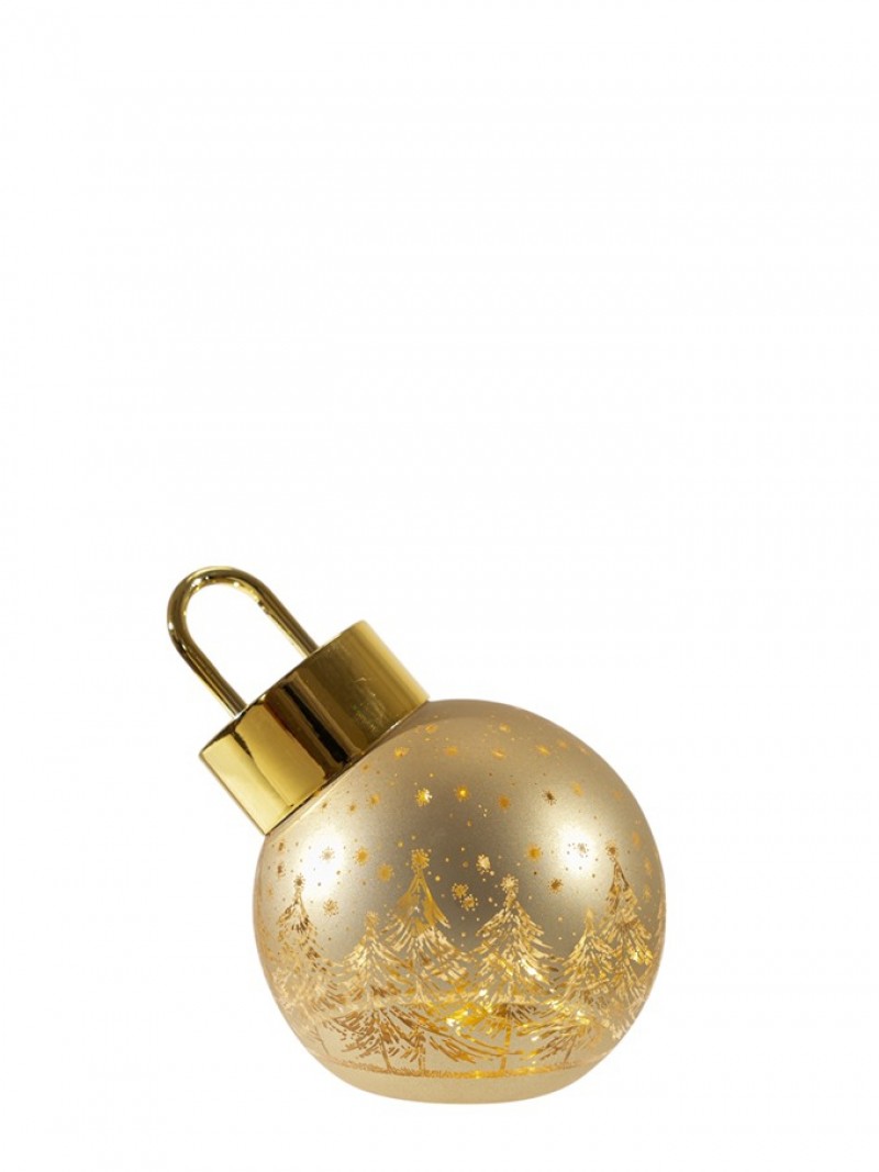 Χριστουγεννιάτικη διακοσμητική μπάλα γυάλινη σε χρυσό χρώμα με φως led μπαταρίας από την Zen Collection - Διαστάσεις: 10x12εκ.