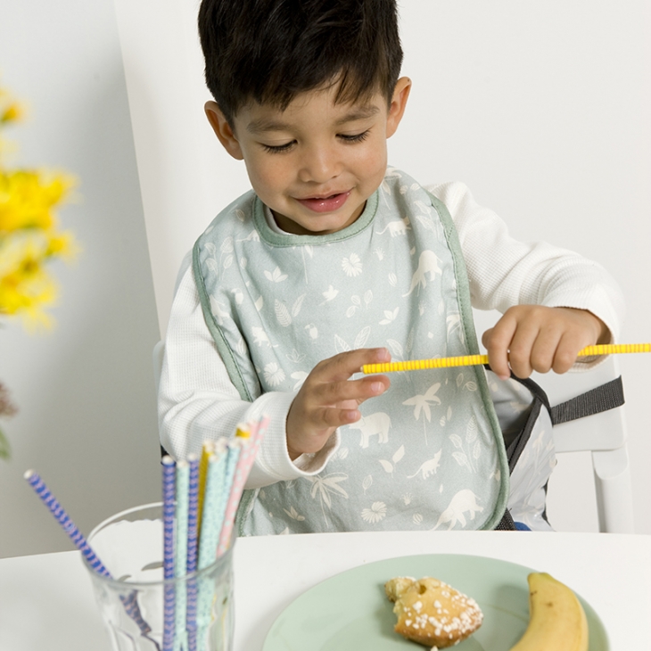 Η μία σαλιάρα/ποδιά είναι αδιάβροχη από ασφαλές υλικό PEVA ιδανική για φαγητό και για λέρωμα. Καθαρίζεται πανεύκολα με ένα σφουγγαράκι.