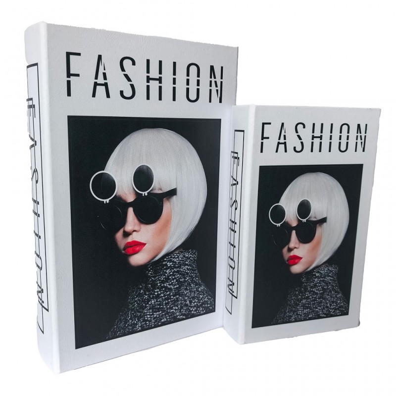 Σετ 2τμχ διακοσμητικά κουτιά σε σχήμα βιβλίου σε λευκό - μαύρο χρώμα από την ESPIEL - Διαστάσεις: 30x20x6,5εκ.-24x15x4,5εκ.