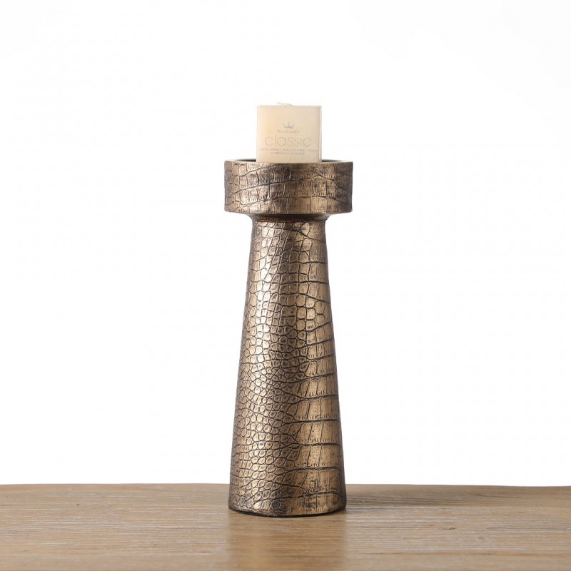 Κηροπήγιο ανάγλυφο polyresin σε χάλκινο - χρυσό χρώμα από την ESPIEL - Διαστάσεις: 10x10x28εκ.