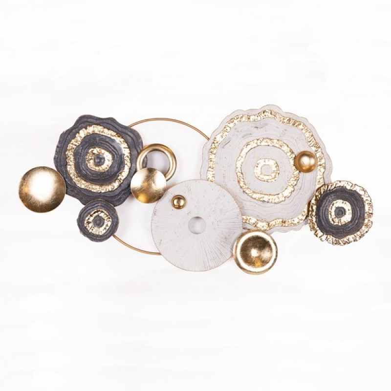 Διακοσμητικό τοίχου μεταλλικό, σε χρυσό - γκρι - λευκό χρώμα από την ESTHETI - Διαστάσεις: 127,5x6x63εκ.